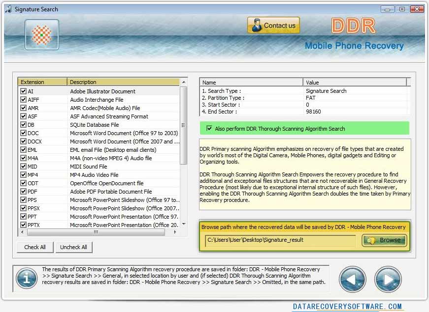 DDR Thorough Scanning Algorithm based search running to recover all lost data.